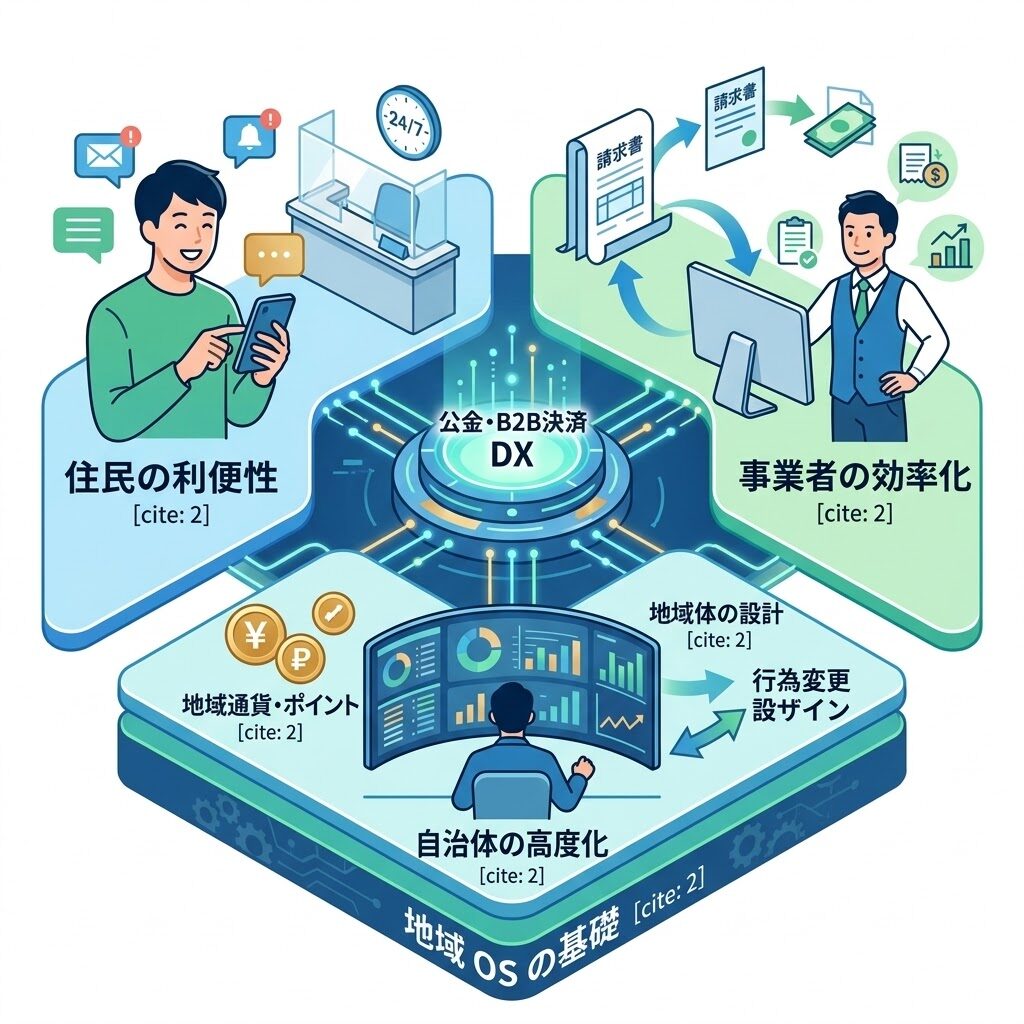 つまり、公金やB2B決済のDXは、地味に見えて、実は地域OSの基礎体力を左右するテーマなのです。
